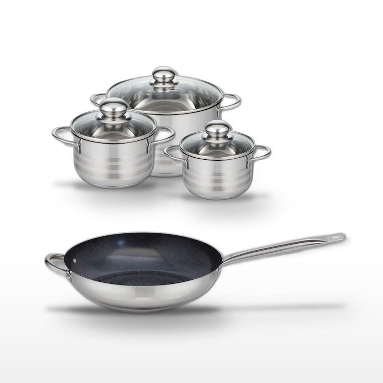 - DESCRIPTION : DESCRIPTION : Ce lot Elo comprend une poêle céramique 32 cm et trois faitouts en inox de 14, 16 et 20 cm, tous sans PFAS, offrant une cuisson saine et homogène.