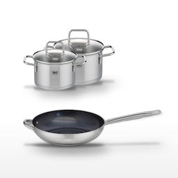 - DESCRIPTION : Ce lot Elo propose une poêle céramique 32cm et deux faitouts en inox (14cm et 16cm), parfaits pour cuisiner sainement.
