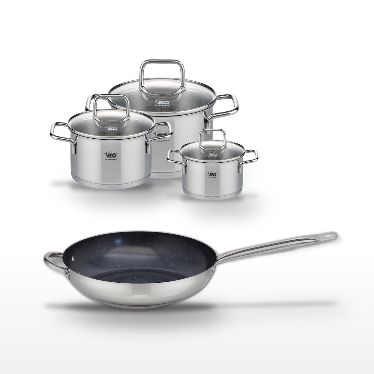 - DESCRIPTION : DESCRIPTION : Ensemble de cuisson Elo avec poêle céramique 32 cm et trois faitouts en inox de 12, 16 et 20 cm. Idéal pour une cuisson saine et homogène.