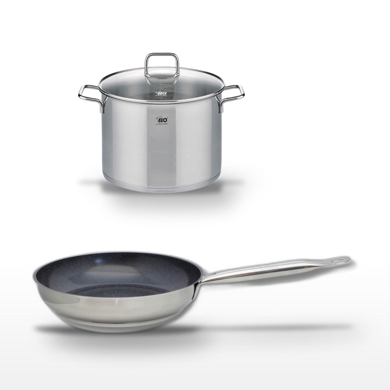 Lot Poêle céramique 28cm & Faitout inox 26cm Elo Profi Therm Platinum