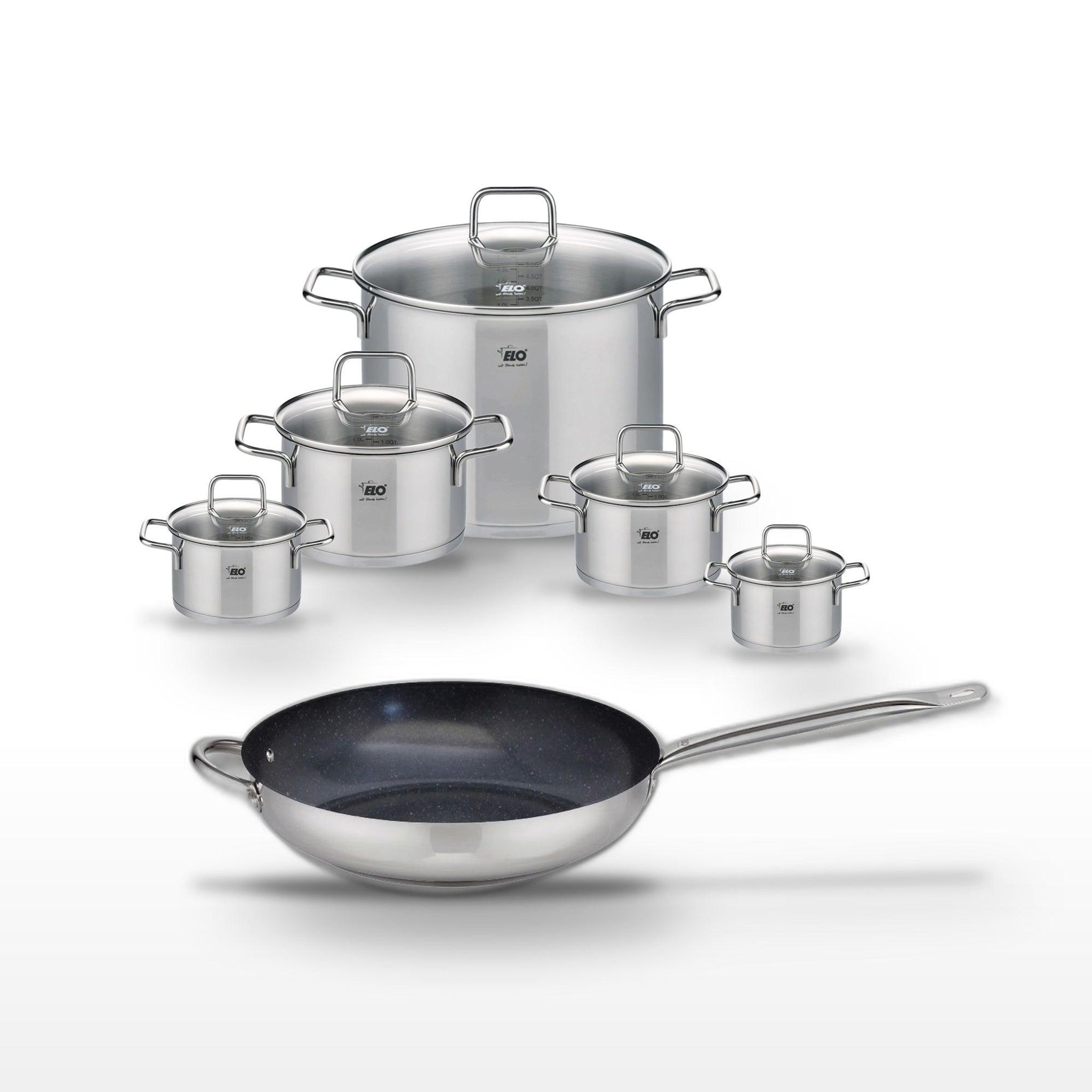 - DESCRIPTION : DESCRIPTION : Ensemble complet avec une poêle céramique 32 cm Elo Profi Therm Platinum et cinq faitouts en inox Elo Citrin pour une cuisine polyvalente.