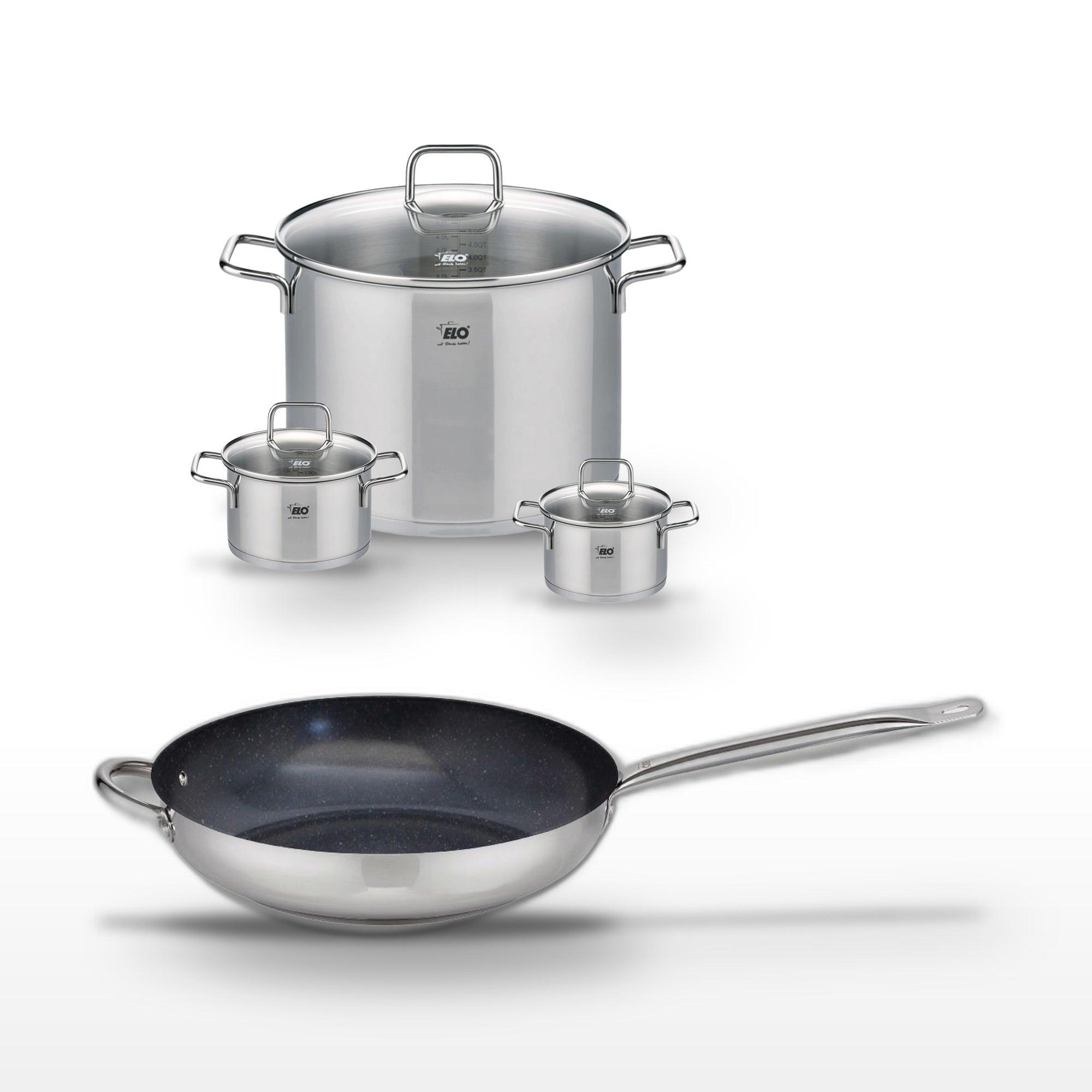 Lot Poêle céramique 32cm & 3 Faitouts Elo Profi Therm Platinum