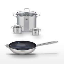 - DESCRIPTION : Un lot complet avec une poêle céramique 32 cm pour une cuisson homogène et trois faitouts en inox pour toutes vos préparations.