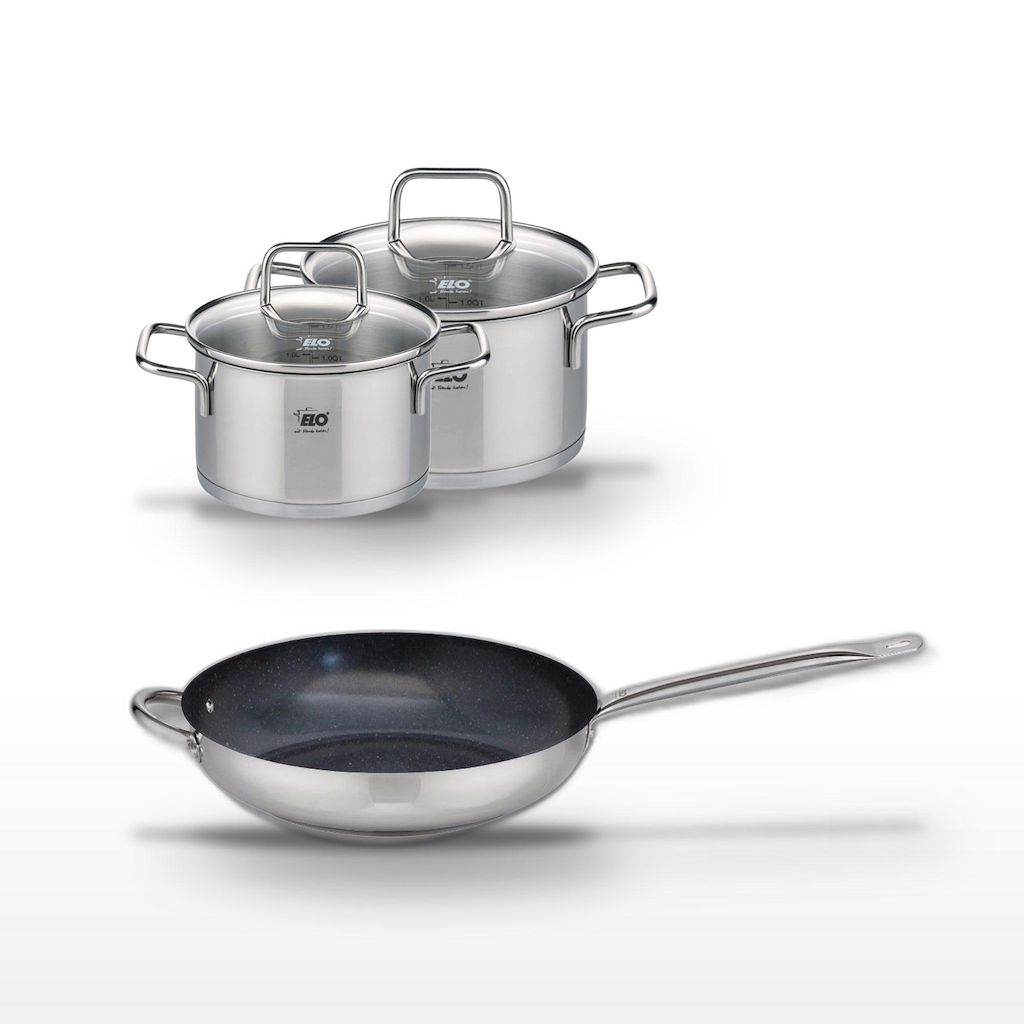 Lot Poêle céramique 32cm Elo Profi Therm Platinum et Faitouts 12/14cm Elo