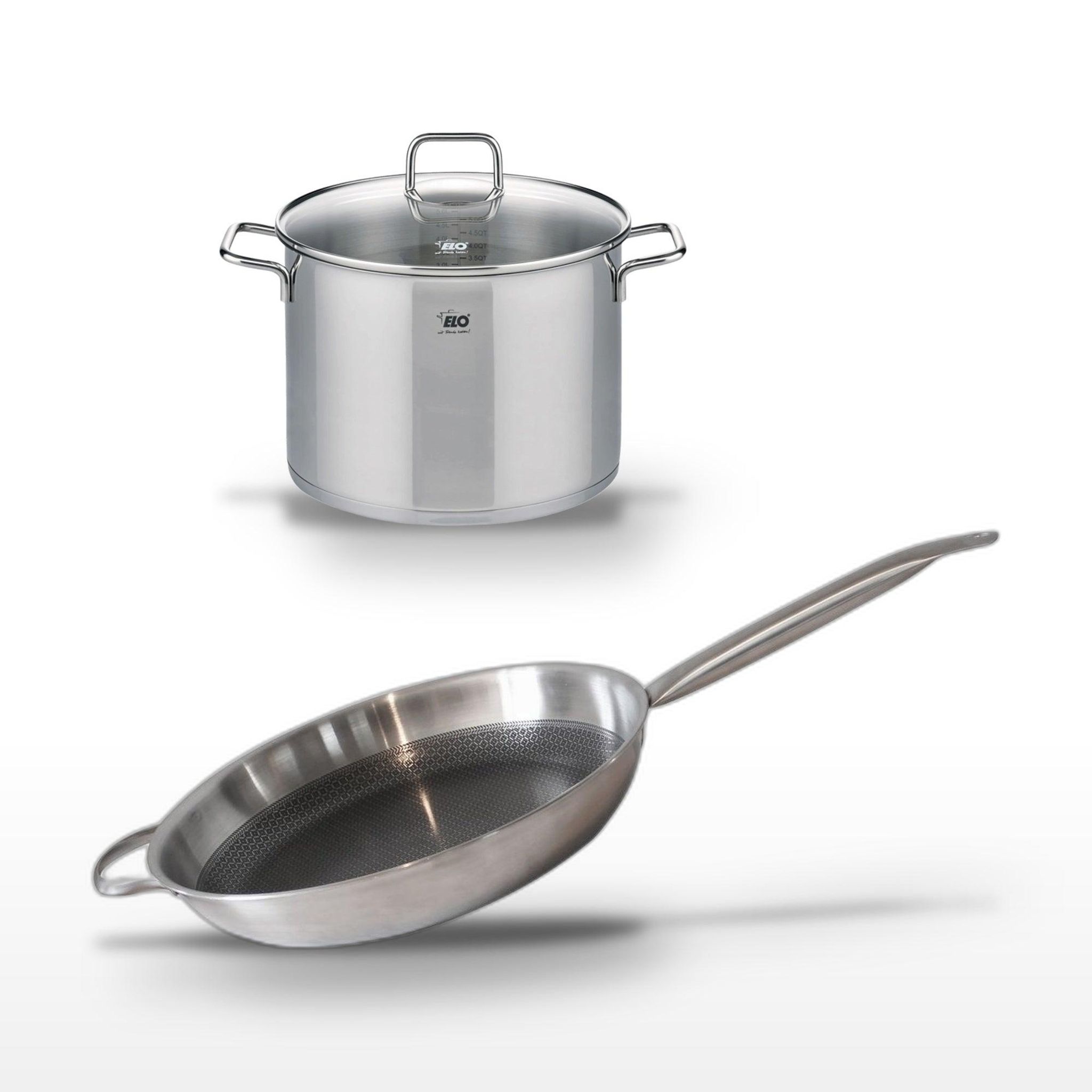 - DESCRIPTION : DESCRIPTION : Ce lot Elo comprend une poêle 32cm et un faitout 26cm, tous deux en acier inoxydable 18/10, assurant une cuisson homogène et rapide.