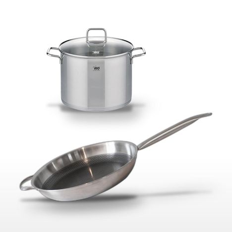 Lot Poêle en acier inoxydable 32cm et Faitout 26cm Elo Relief Solution