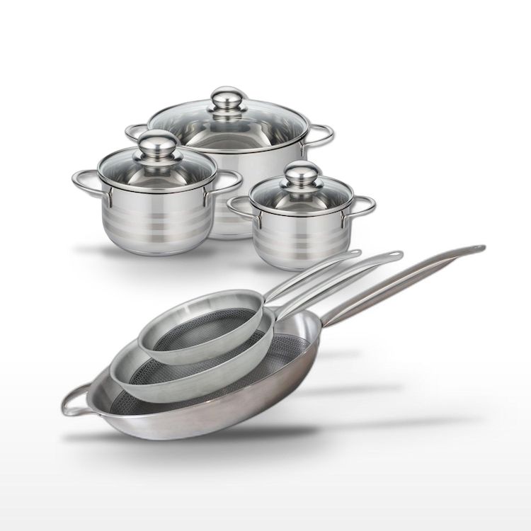 - DESCRIPTION : Ensemble de poêles et faitouts Elo Relief Solution en acier inoxydable, idéal pour une cuisine saine et efficace.