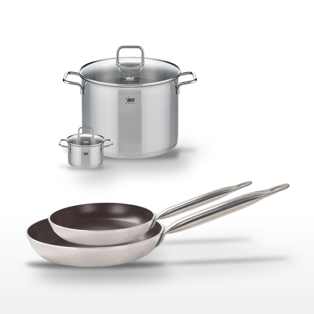 - DESCRIPTION : DESCRIPTION : Cet ensemble Elo Bistro Line inclut des poêles en céramique sans PFAS et des faitouts en inox, assurant une cuisson uniforme et saine.