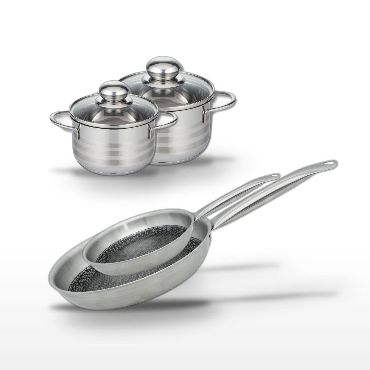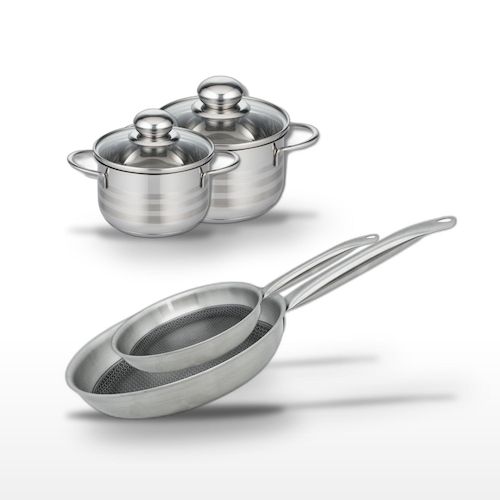 - DESCRIPTION : L'ensemble Elo Relief Solution inclut deux poêles et deux faitouts en acier inoxydable, offrant une cuisson homogène et une compatibilité tous feux.