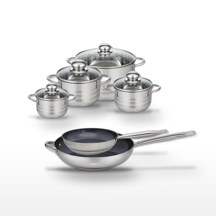 - COMPOSITION : COMPOSITION : Les poêles et faitouts sont en acier inoxydable de haute qualité, avec un revêtement sans PFAS pour une cuisine sans risque.