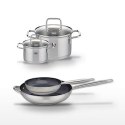 - DESCRIPTION : Ensemble Elo Profi Therm Platinum comprenant deux poêles céramiques sans PFAS et deux faitouts en inox, pour une cuisine saine et performante.