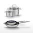 - COMPOSITION : Poêles en acier inoxydable avec revêtement céramique sans PFAS, faitouts en inox avec couvercles en verre.
