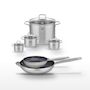 - COMPOSITION : Acier inoxydable 18/10 pour les poêles et faitouts, avec revêtement céramique sans PFAS et couvercles en verre.