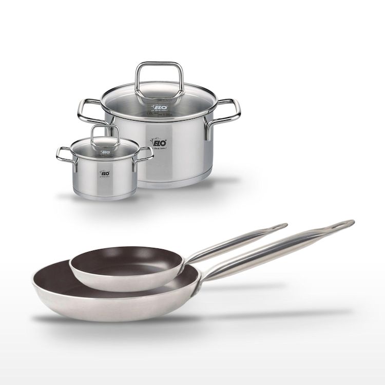 - DESCRIPTION : DESCRIPTION : Cet ensemble Elo propose des poêles en céramique et des faitouts en inox, assurant une cuisson saine et homogène.