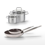 - DESCRIPTION : Ce lot Elo comprend des poêles de 24 cm et 32 cm avec revêtement céramique sans PFAS et des faitouts en inox de 14 cm et 20 cm, parfaits pour une cuisine saine.