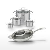 - COMPOSITION : Inox 18/10 pour les poêles et inox avec couvercle en verre pour les faitouts. Structure Triply pour une répartition optimale de la chaleur.