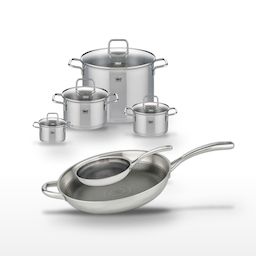 DESCRIPTION : Ce lot Elo comprend deux poêles en inox 18/10 avec revêtement antiadhésif et quatre faitouts en inox. Idéal pour une cuisine variée et saine.PETIT + : Les poêles sont dotées d'un revêtement ELODUR® Professional sans PFAS et les faitouts ont un fond capsulé pour une cuisson économe.COMP