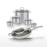 - COMPOSITION : Fabriqué en acier inoxydable de haute qualité avec un noyau en aluminium pour une répartition uniforme de la chaleur. Les faitouts incluent des couvercles en verre.