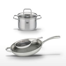 Lot Poêles 24cm & 32cm en inox Elo Relief Evolution avec Faitout 14cm