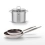 - COMPOSITION : Poêles en aluminium et inox avec revêtement céramique sans PFAS, faitout en acier inoxydable 18/10 et verre.