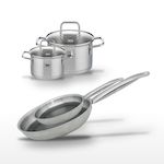 - COMPOSITION : COMPOSITION : Chaque pièce est fabriquée en acier inoxydable de haute qualité, avec un fond en aluminium pour une conductivité thermique optimale, et un revêtement antiadhésif.