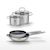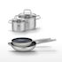 - COMPOSITION : Les poêles sont en acier inoxydable avec revêtement sans PFAS, et les faitouts en inox avec couvercle en verre.