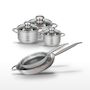 - COMPOSITION : Poêles en acier inoxydable 18/10 avec revêtement ELODUR® Select, faitouts en acier inoxydable sans PFAS, couvercles en verre.