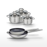 - COMPOSITION : COMPOSITION : Fabriqués en acier inoxydable 18/10, ces ustensiles sont robustes et résistent à la corrosion. Le revêtement sans PFAS assure une cuisson sans risque pour la santé.