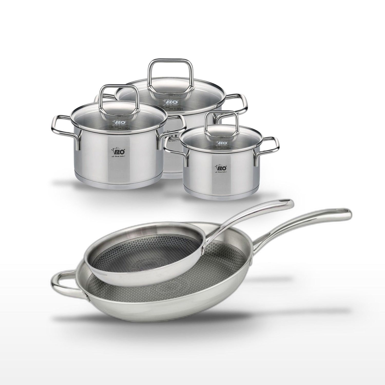 Lot Poêles 28/32cm et Faitouts 12/14/16cm Elo Relief Evolution