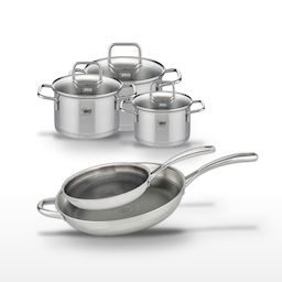 - COMPOSITION : Acier inoxydable 18/10 pour les poêles et faitouts, avec revêtement antiadhésif pour les poêles. Structure Triply pour une diffusion optimale de la chaleur.