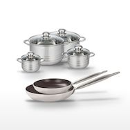 - COMPOSITION : COMPOSITION : Aluminium et inox pour les poêles, acier inoxydable pour les faitouts, tous garantis sans PFAS.