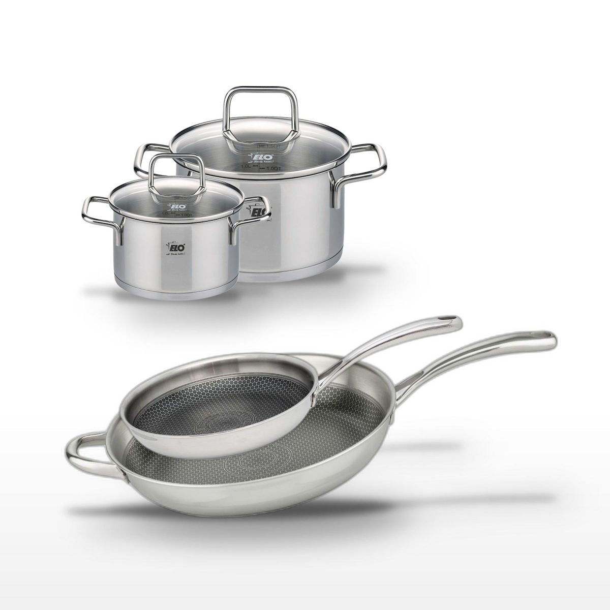 - DESCRIPTION : Ensemble Elo Relief Evolution avec poêles et faitouts en inox, pour une cuisson saine et homogène.