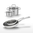 - COMPOSITION : Acier inoxydable 18/10 pour les poêles, acier inoxydable et verre pour les faitouts, garantissant robustesse et durabilité.