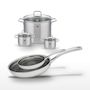 - COMPOSITION : Acier inoxydable 18/10 pour les poêles, noyau en aluminium, acier inoxydable magnétique. Faitouts en inox et verre pour une cuisson optimale.