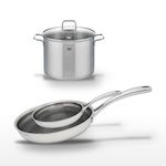 - COMPOSITION : Acier inoxydable 18/10 pour les poêles, avec un noyau en aluminium , faitout en acier inoxydable avec couvercle en verre.