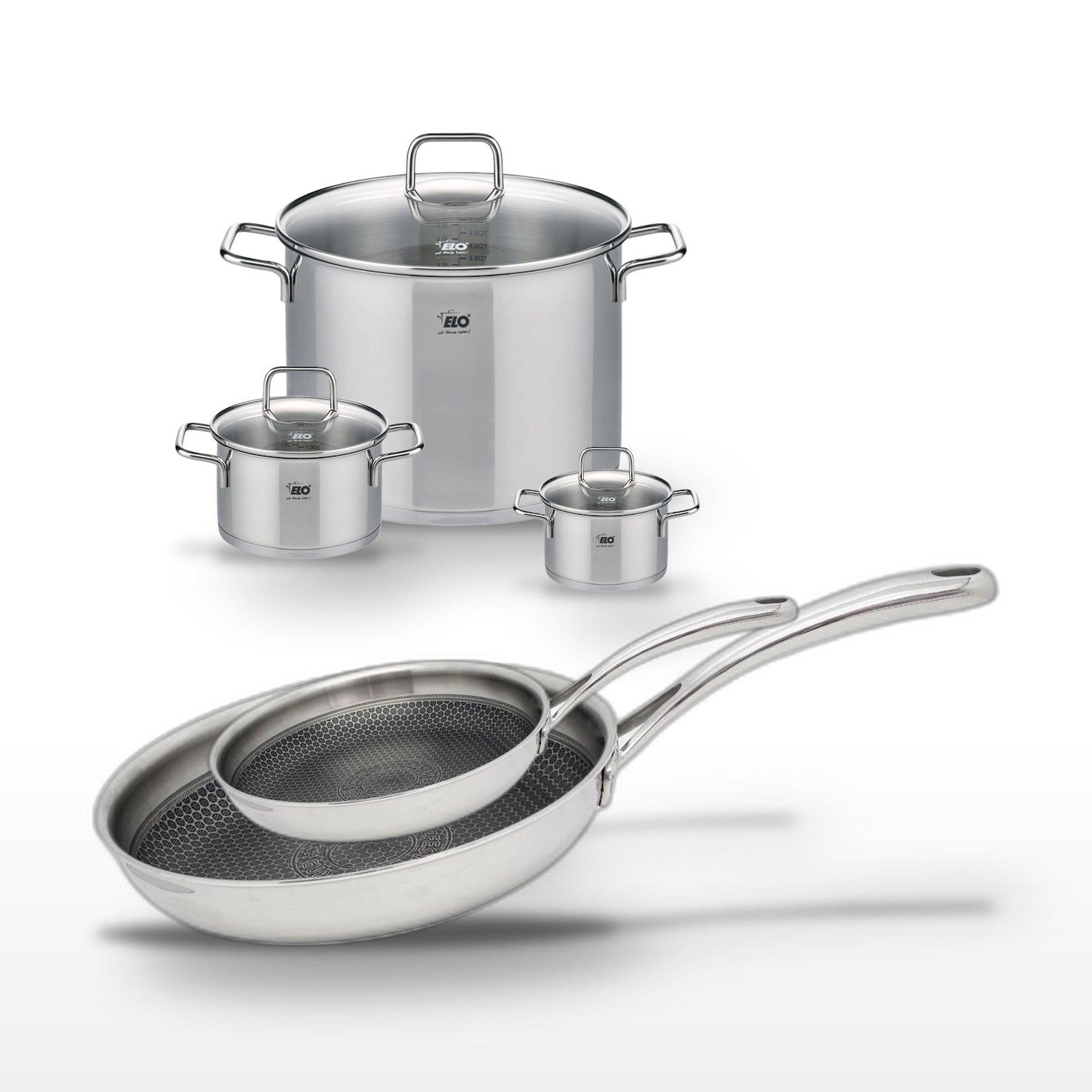 - DESCRIPTION : Ce lot Elo Relief Evolution est idéal pour une cuisine variée et saine, combinant poêles et faitouts en inox de haute qualité.