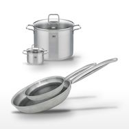 L'ensemble Elo Relief Solution est un choix judicieux pour les professionnels de la restauration et les passionnés de cuisine. Composé de deux poêles (28 cm et 24 cm) et de deux faitouts (26 cm et 14 cm), cet ensemble offre une flexibilité inégalée pour une multitude de préparations culinaires. Les poêles, avec leur revêtement antiadhésif ELODUR® Select sans PFAS, garantissent une cuisson homogène et une facilité de nettoyage, tandis que les faitouts en inox sont parfaits pour les plats mijotés ou les soupes. La construction en acier inoxydable 18/10 assure une distribution uniforme de la chaleur et une compatibilité avec tous les types de feux, y compris l'induction. Le design moderne et fonctionnel, avec un bord verseur et un manche creux, répond aux exigences des cuisines professionnelles. Garantissant qualité et durabilité, cet ensemble est l'outil indispensable pour une cuisine performante et élégante.