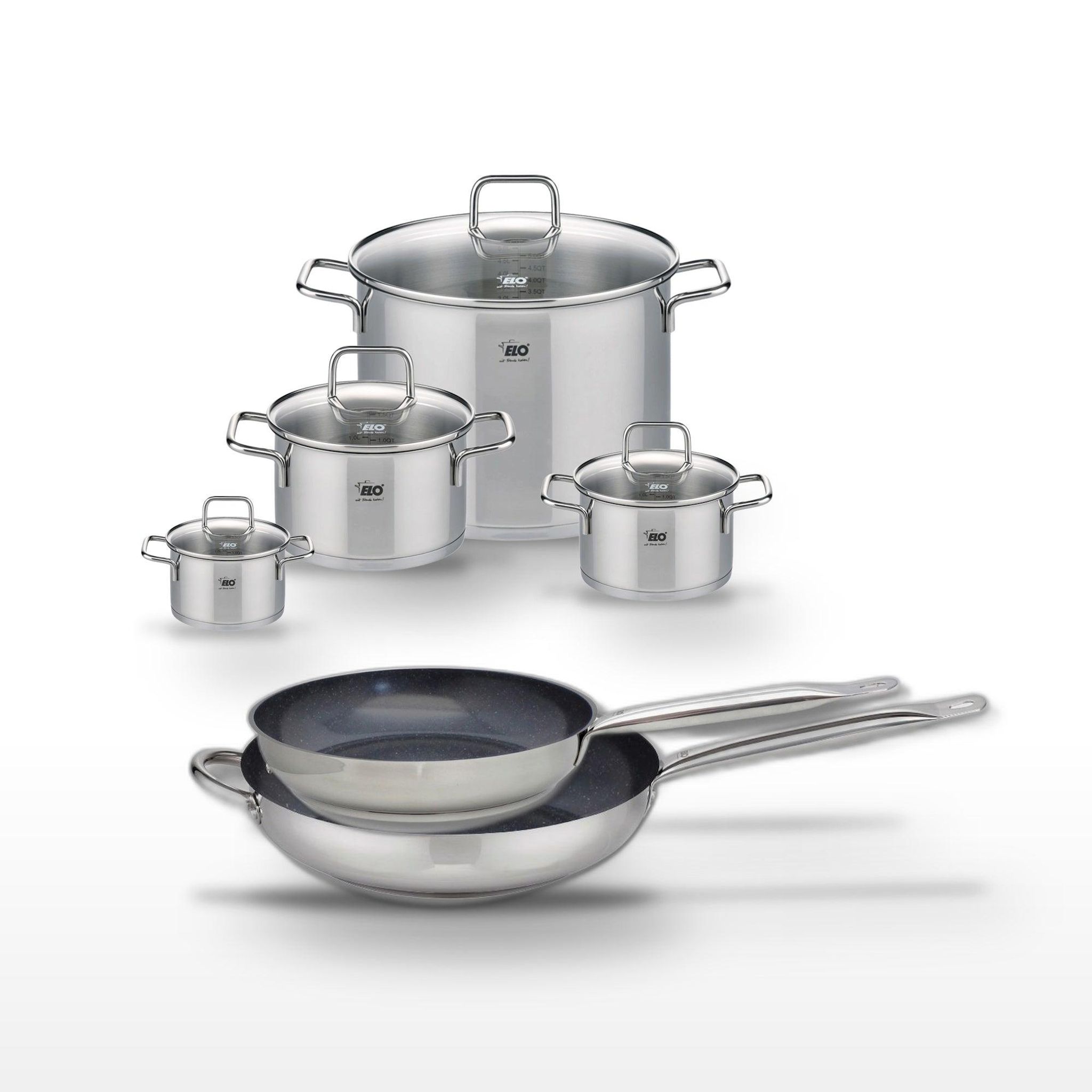 Lot Poêles 28cm & 32cm Elo Profi Therm Platinum et Faitouts Inox Elo Citrin