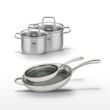 Ce lot d'ustensiles de cuisine Elo est conçu pour répondre aux exigences des professionnels et des amateurs de cuisine. Les poêles de la collection Elo Relief Evolution, en acier inoxydable 18/10, sont dotées d'un revêtement antiadhésif ELODUR® Professional, garantissant une cuisson saine sans PFAS et une résistance accrue aux rayures. Leur structure Triply multicouche assure une répartition uniforme de la chaleur, indispensable pour une cuisson parfaite. Les faitouts Elo Citrin, avec leur fond capsulé, optimisent l'énergie consommée tout en préservant les nutriments des aliments. Chaque élément est compatible avec tous les types de feux, y compris l'induction, et est conçu pour une utilisation intensive. Le nettoyage est simplifié grâce à la compatibilité lave-vaisselle, bien que le lavage à la main soit conseillé pour prolonger la durée de vie des poêles. Ce lot est un choix judicieux pour ceux qui recherchent performance et durabilité dans leurs équipements de cuisine.