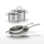 - COMPOSITION : Acier inoxydable 18/10 pour les poêles, acier inoxydable pour les faitouts, revêtement antiadhésif ELODUR® Professional sans PFAS.