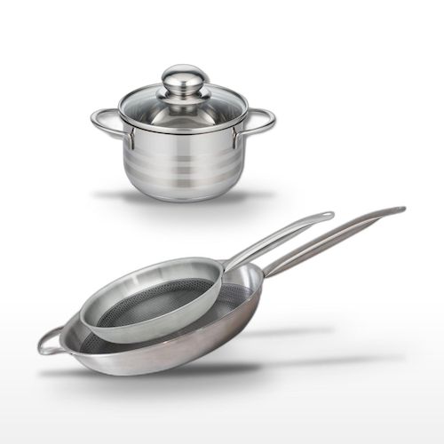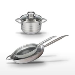 - DESCRIPTION : DESCRIPTION : Lot de deux poêles en inox 18/10 Elo Relief Solution et un faitout 16cm Elo Brillant. Idéal pour une cuisine variée.