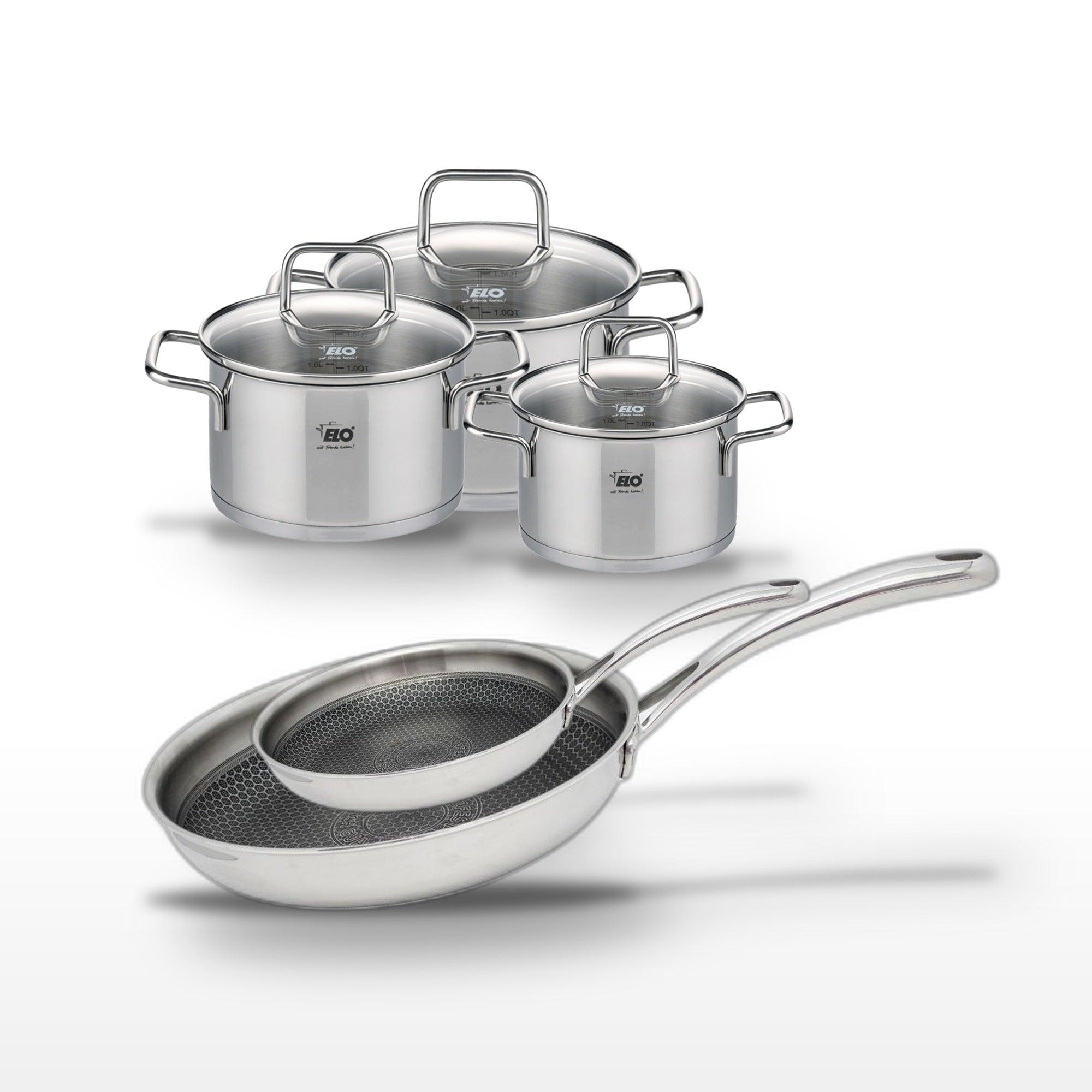 - COMPOSITION : Acier inoxydable 18/10 pour les poêles, avec revêtement ELODUR® Professional. Faitouts en inox avec couvercles en verre.
