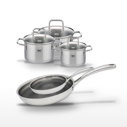 Pour les professionnels de la restauration et les amateurs de cuisine raffinée, ce lot Elo propose un ensemble complet de poêles et faitouts en acier inoxydable de haute qualité. Les poêles de la collection Elo Relief Evolution, avec leur revêtement ELODUR® Professional sans PFAS, offrent une cuisson saine et une résistance accrue aux rayures. Leur structure Triply assure une répartition uniforme de la chaleur, essentielle pour des cuissons précises. Les faitouts de la collection Elo Citrin, avec leur fond capsulé, préservent les vitamines des aliments tout en consommant peu d'énergie. Conçu pour la polyvalence, cet ensemble est compatible avec tous les types de feux, y compris induction et four, et répond aux exigences des cuisines professionnelles. L'entretien est simplifié, bien que le lavage à la main soit recommandé pour maintenir l'intégrité des revêtements. Avec Elo, apportez une touche de professionnalisme et de durabilité à votre espace culinaire.