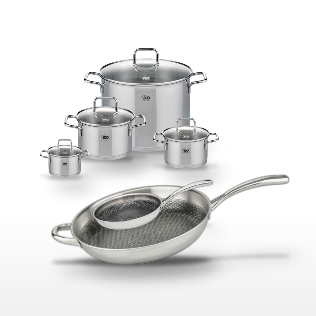 - DESCRIPTION : Ce lot Elo comprend des poêles et faitouts en inox de haute qualité, assurant une cuisson uniforme et saine. Les poêles sont dotées d'un revêtement antiadhésif sans PFAS.
