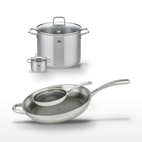 Lot Poêles 32cm & 24cm en inox Elo Relief Evolution et Faitouts 26cm & 12cm