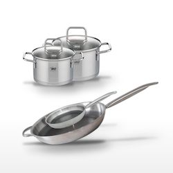 - DESCRIPTION : DESCRIPTION : L'ensemble Elo Relief Solution inclut des poêles et faitouts en acier inoxydable pour une cuisine polyvalente.