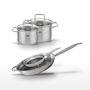 L'ensemble de cuisine Elo Relief Solution propose des ustensiles de haute qualité pour les professionnels et amateurs de cuisine. Les poêles de 32 cm et 24 cm, fabriquées en acier inoxydable 18/10, offrent une cuisson homogène grâce à leur revêtement antiadhésif minéral ELODUR® Select sans PFAS. Leur conception en trois couches assure une excellente conductivité thermique et une compatibilité avec tous types de feux, y compris l'induction. Les faitouts de 16 cm et 14 cm, également en acier inoxydable, sont parfaits pour préparer des plats mijotés, avec un fond capsulé qui préserve les vitamines et consomme peu d'énergie. Le design élégant et fonctionnel de ces ustensiles, combiné à leur facilité d'entretien (lavable en lave-vaisselle), garantit une utilisation agréable et durable. Elo, marque reconnue pour sa qualité depuis 1934, vous offre une garantie de 4 ans sur ces produits, assurant ainsi une longévité et une satisfaction optimales.