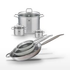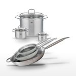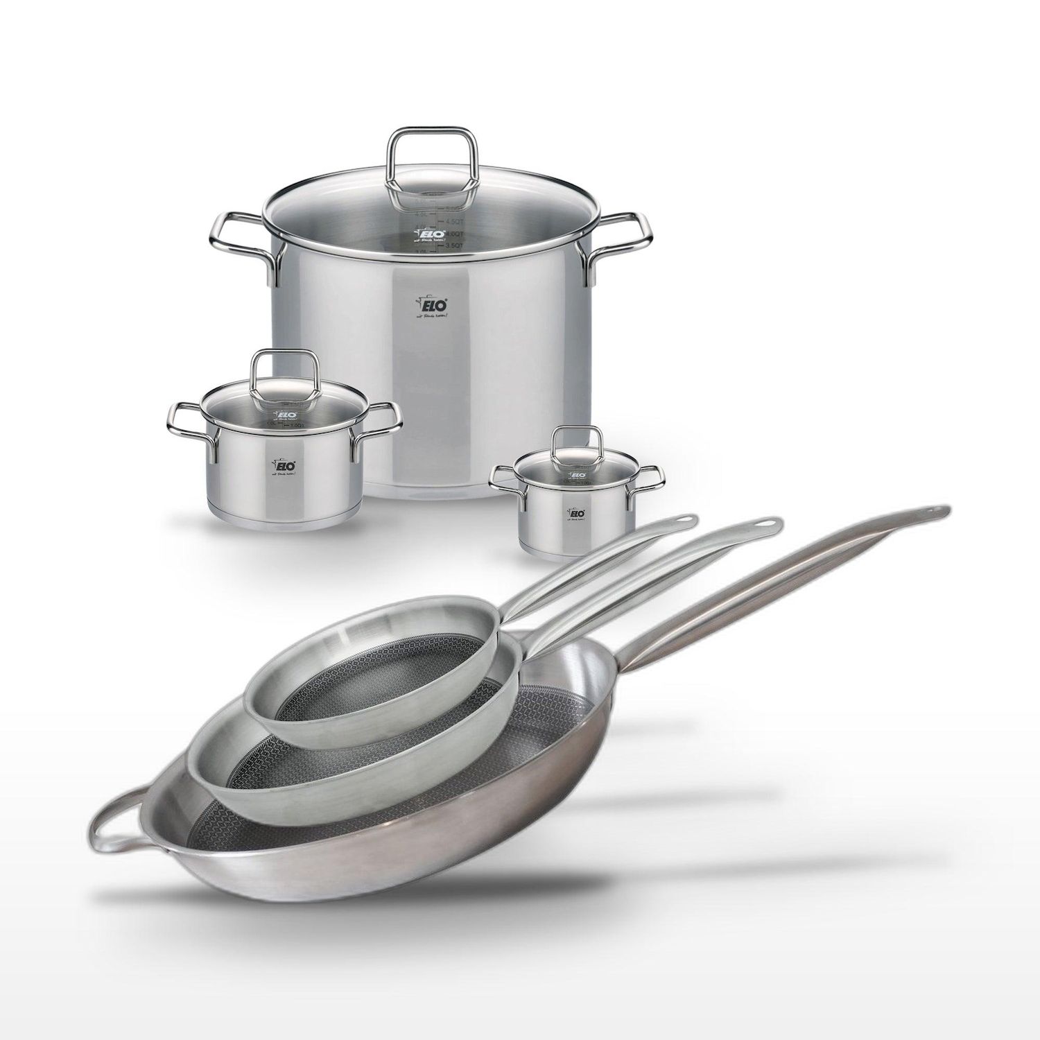 - DESCRIPTION : DESCRIPTION : Ensemble de poêles et faitouts Elo Relief Solution, alliant acier inoxydable 18/10 et technologie antiadhésive avancée.