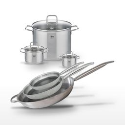 L'ensemble Elo Relief Solution est l'outil indispensable pour les professionnels de la cuisine et les amateurs éclairés. Composé de trois poêles en acier inoxydable 18/10 de tailles 32 cm, 28 cm et 24 cm, ce lot garantit une cuisson homogène grâce à son revêtement antiadhésif ELODUR® Select sans PFAS, résistant aux rayures. Les poêles sont compatibles avec tous les types de feux, y compris l'induction, et peuvent être utilisées au four jusqu'à 240°C, offrant ainsi une flexibilité inégalée en cuisine. Les faitouts en inox de 12 cm, 16 cm et 26 cm, quant à eux, sont parfaits pour mijoter des plats, cuire des pâtes ou préparer des soupes, tout en préservant les nutriments grâce à leur fond capsulé éco-énergétique. Le design moderne et fonctionnel de chaque pièce, avec des bords verseurs et des manches ergonomiques, assure une prise en main confortable et sécurisée. Cet ensemble est non seulement un choix judicieux pour une cuisine performante, mais il promet également une durabilité exceptionnelle, soutenue par la qualité reconnue de la marque Elo.