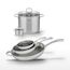 - COMPOSITION : COMPOSITION : Acier inoxydable 18/10 pour les poêles, avec noyau en aluminium. Faitouts en inox avec couvercles en verre. Tous compatibles induction.